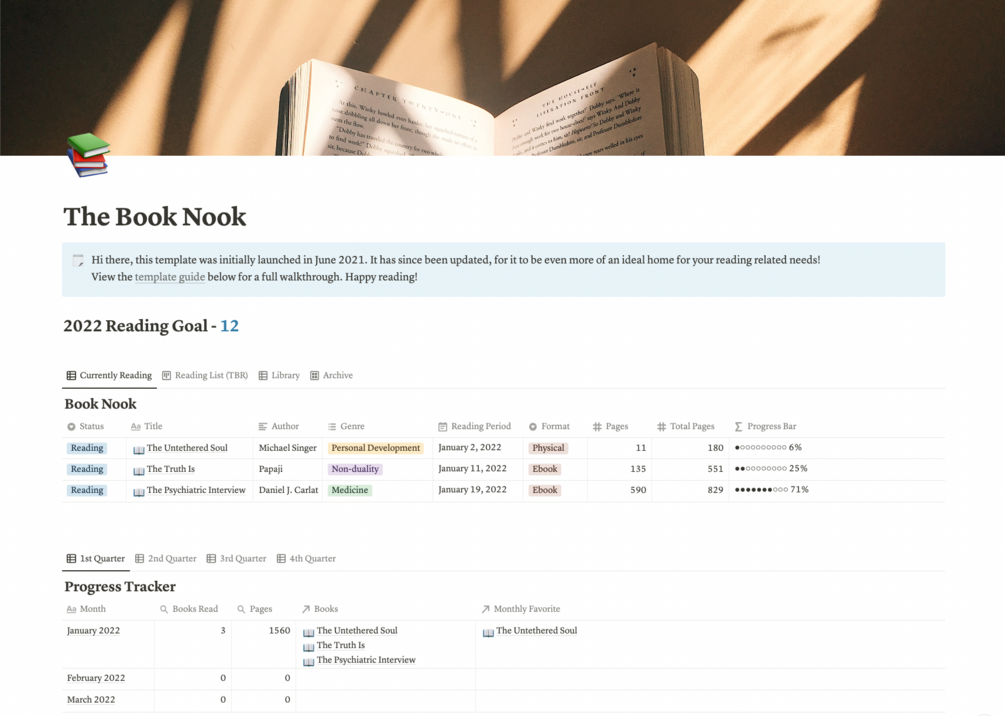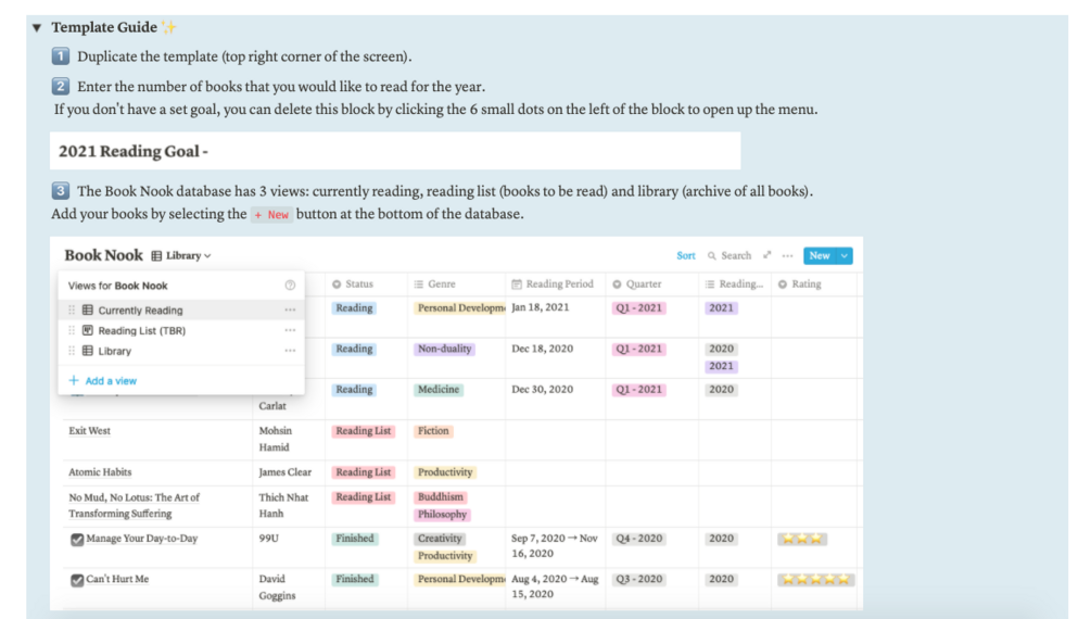 ☑️ "Book wisdom" table - capture lessons learnt from books and practical ways to implement these lessons in your daily life.